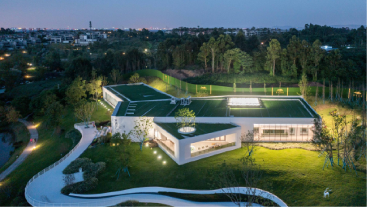 内拥约2万平米的下沉式峡谷中庭园林