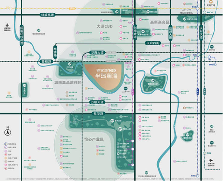 钟家湾TOD·半岛澜湾,位于大源南,上承大源金融城,下接怡心湖右邻天府新区。项目聚焦大源南及怡心湖两大板块的生态住区需求以丰富生活氛围、优质生态资源,缔造城南优质改善低密湾居生活