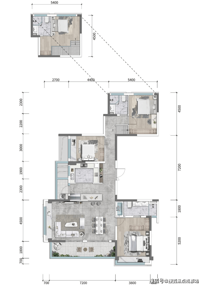 最满足高改的需求面积——147-200㎡的跃层产品(实得177-450㎡)