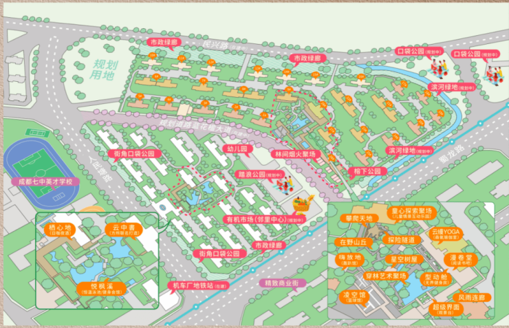 占地约106亩的宏大体量,使锦樾序在主城新盘中独具优势。项目以"主城百亩生活力聚场"为定位,借鉴国际社区规划理念,打造充满活力的复合型社区。