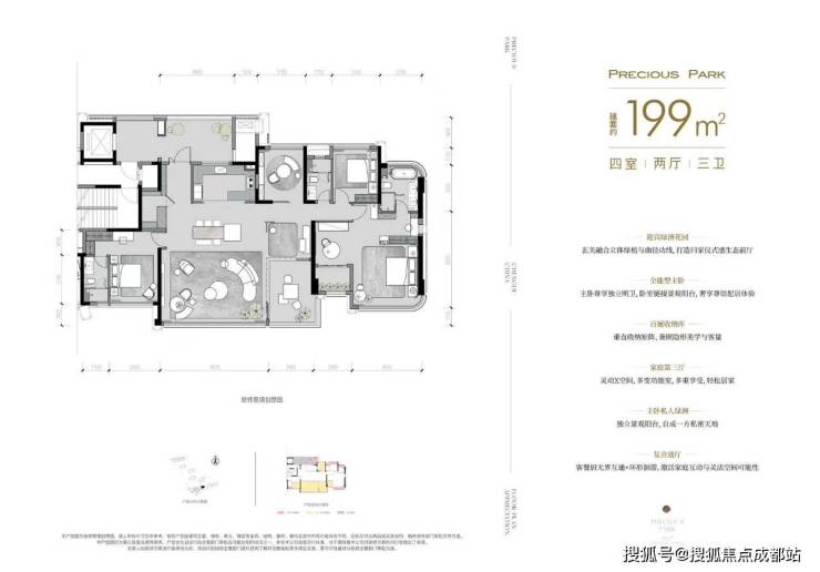 1.室内打造景观中轴 | 2.全空间独立花园配置 | 3.主城唯一室内四花园