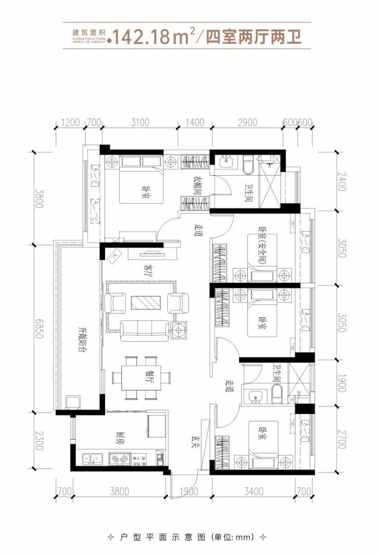 餐厅厨阳台一体化设计,会客空间尊崇大气;星级套房主卧,独立衣帽间私密自成天地。