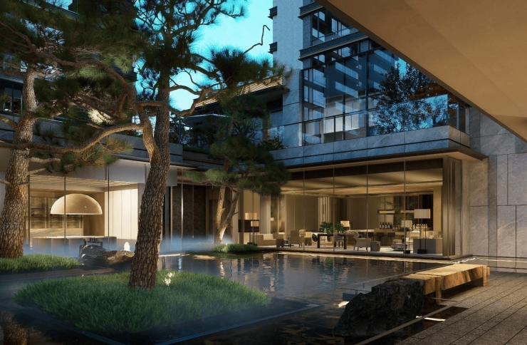 国际设计认证:荣获2024伦敦设计奖铂金奖,入口景观采用泰山移植松、巴西奢石等高端材质,彰显隐奢质感。
