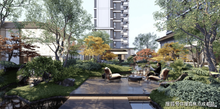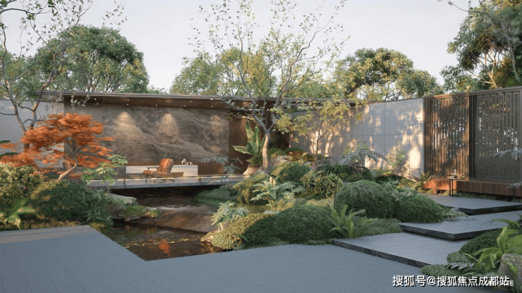 第1域/鸣鹿庭轻灵而自然的前院,完成城市烟火与静谧生活的诗意隔离。