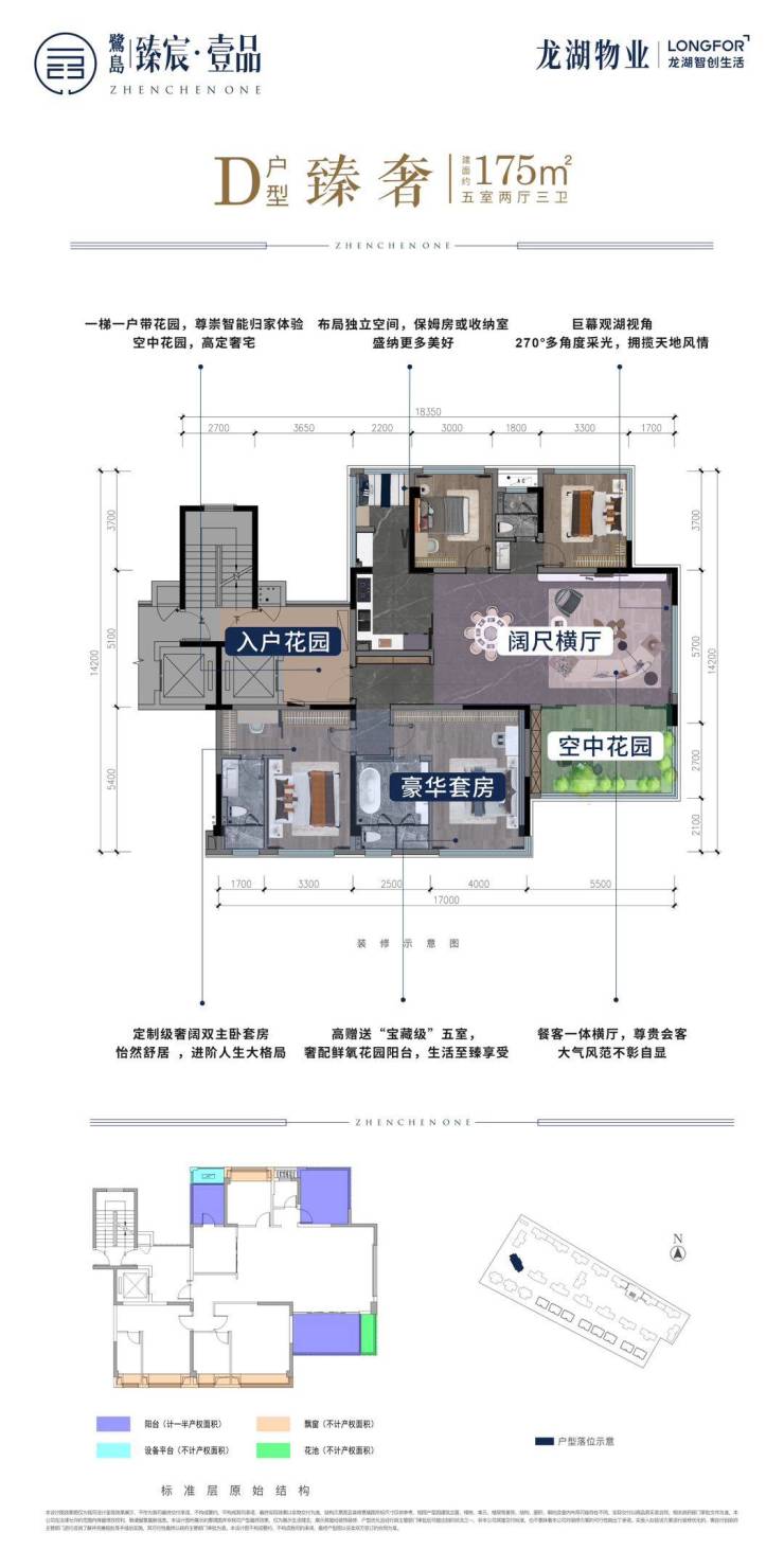 纯粹洋房——14-17层1T1纯板式;私梯入户——户户独享电梯私厅;顶尖户型——120%超高得房率;无忧精装——一键改造 拎包入住;高奢会所——唯一下沉会所