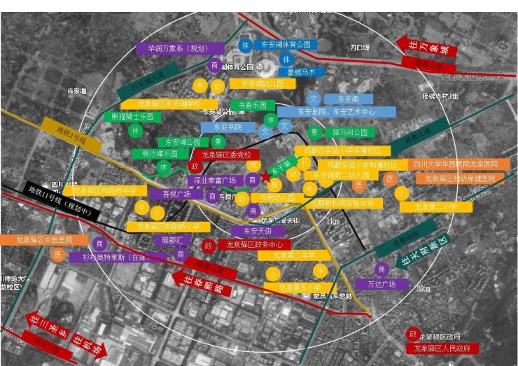 【医疗】半径为4公里范围内,汇集有四川大学华西医院龙泉医院(距项目约1.6km)、成都中医药大学附属医院龙泉医院(距项目约3.5km)、龙泉驿妇幼保健院(距项目约2km)、四川省第三人民医院(距项目约3.9km)等三甲医院