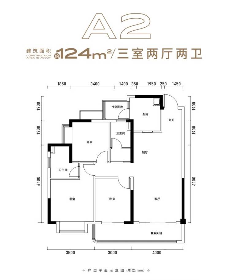 A2 建面约124㎡ 三房两厅两卫