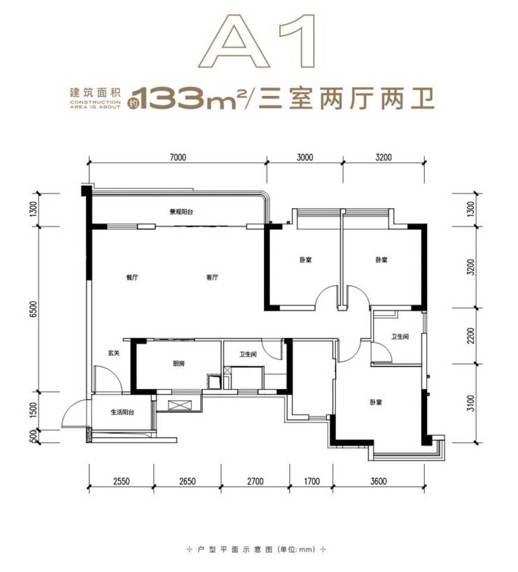 A1 建面约133㎡ 三房两厅两卫