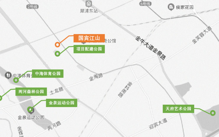 此外“三湖三坊”的天府艺术公园、项目西侧的中海体育公园、金泉运动公园和两河城市森林公园,都进一步为国宾江山的优质生态加持。