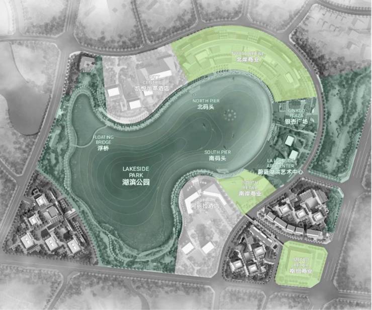 蔚蓝湖滨城三大商业集群:北岸商业+南岸商业+枢纽商业