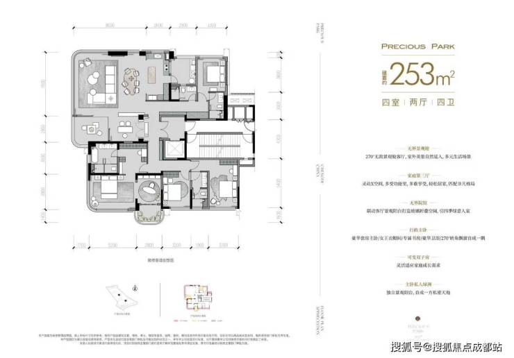 1.室内打造景观中轴 | 2.全空间独立花园配置 | 3.主城唯一室内四花园