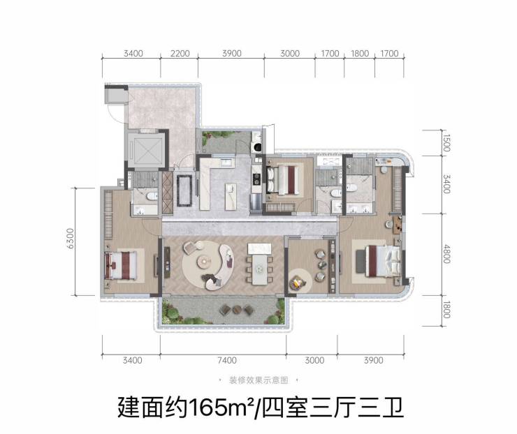 建面约165㎡-四室三室三厅