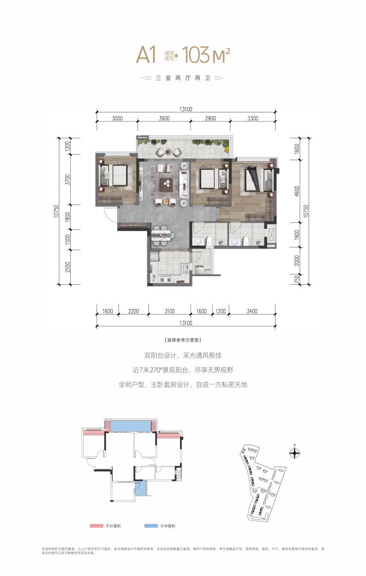 总价范围:103㎡约170万(顶层特惠156万) 124㎡约181万