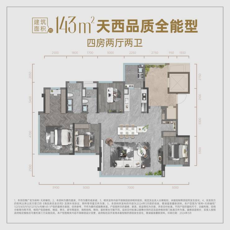 保利天府瑧悦坐拥48亩臻稀地块,采用2.3低密规划,打造20%建筑密度与35%绿地率的生态住区。项目匠心规划15栋纯板式住宅,共计496套120-188㎡四房改善产品,实现南北通透的奢阔空间体验。