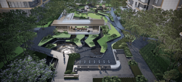 总平布局取意“鸾凤和鸣”,建筑是龙,以点式布局融于园林;景观为凤,从建筑线条与色彩中汲取灵感。建筑与景观的协奏之间,保证居住舒适度和景观最大化,高层实现户户观景,栋栋楼王;叠拼享私密性与极致公园景观视野。