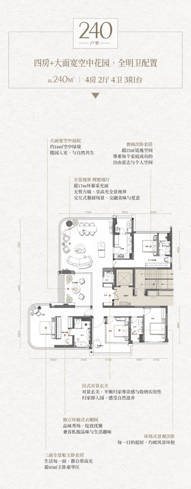 梯户比:260㎡:3T2 ;240/200㎡:2T2