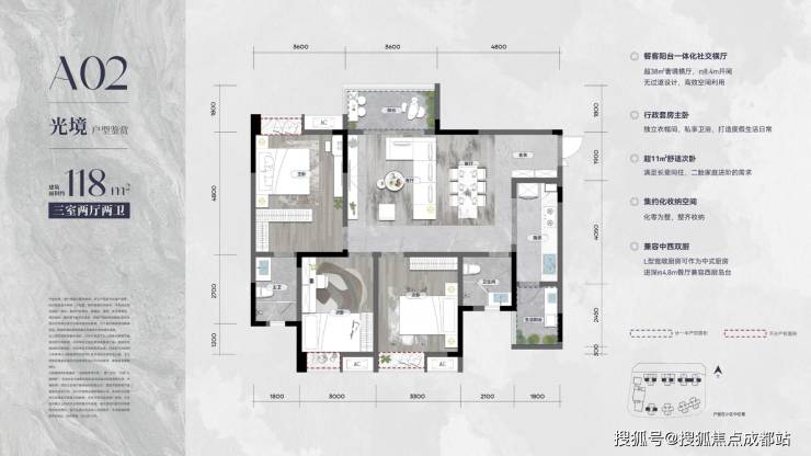 2. 建面约118㎡(套三双卫)