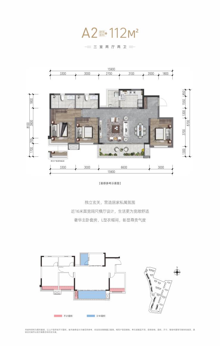 15/16栋17层 建面:118m²132m²(套三/套四双卫)