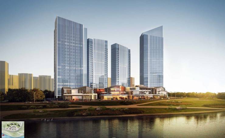 规划建设140米天际写字楼及连廊式商业街区,拟引入星级酒店、主题餐饮等业态,形成自给自足的商业生态圈。