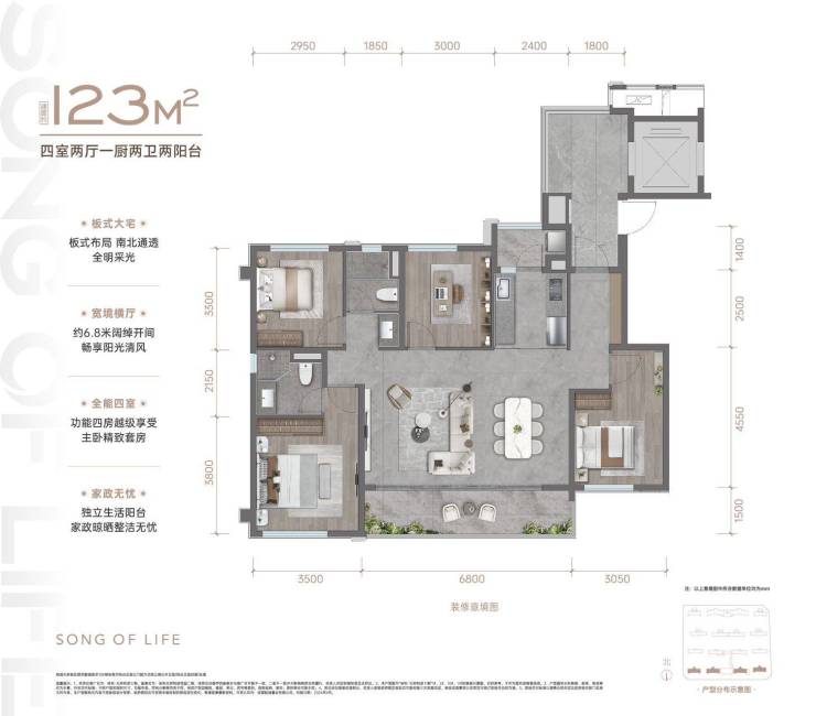 梯户比:123㎡(1T2)、133㎡(2T2)
