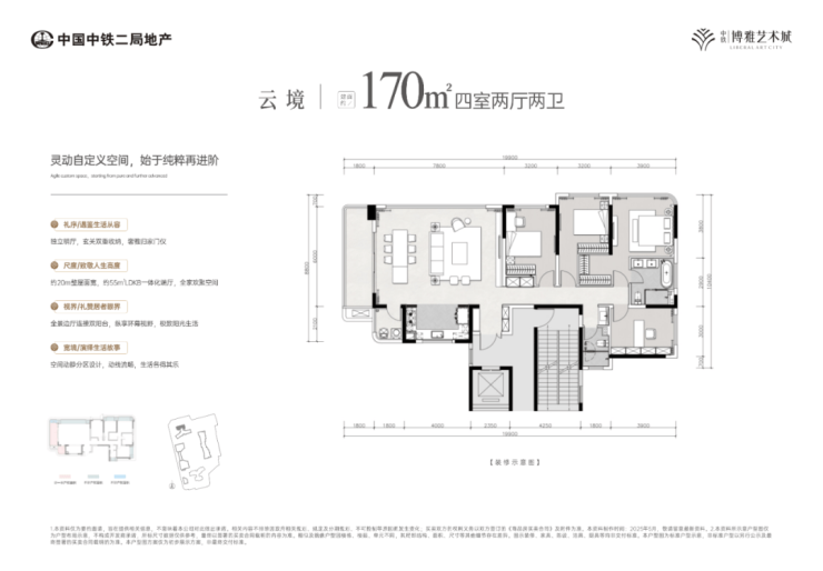 中铁博雅艺术城专注改善型需求,规划建面约170-230㎡大平层产品,营造纯粹社区圈层,空间设计深度契合多代同居生活需求。