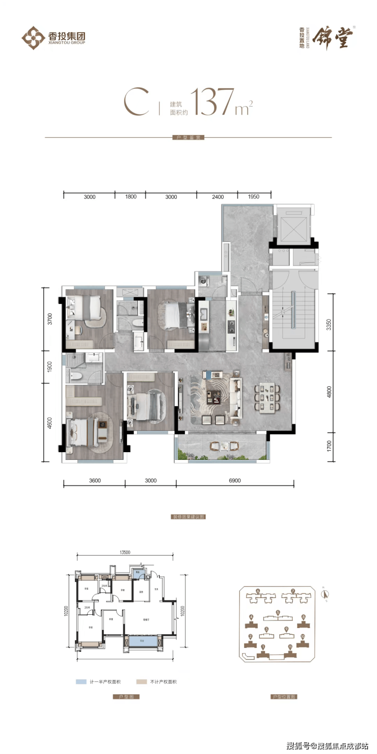 观景洋房8、10、11号楼清水交付:建面约 137㎡,赠送约22平