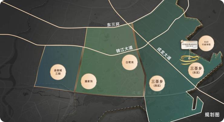 锦江大道3.5环线,三圣花乡,高端改善居住区。锦江大道3.5环线,成都东南,新兴五大居住板块。三圣乡以其优渥自然资源,成为真正高端生态宜居区。三圣乡区域内,以成龙大道为界,三圣乡(东区)依托东部景观带+花乡农居为中心,成为东门置业热门热点。项目则位于板块中心位置,享城市黄金配套、揽稀缺生态景观。