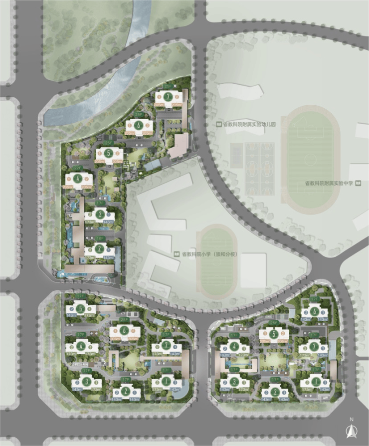 200米范围内省教科院附属学校全龄教育配套,600米达蒙新小学,2.5公里覆盖金苹果锦城一中等优质私立学府,形成完整的国际化教育矩阵。