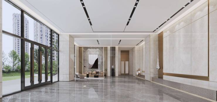 双大堂设计融合现代美学,运用石材、金属等材质打造星级归家体验。地下车库配备20%充电桩,设置无障碍通道及专用车位,体现人性化设计。