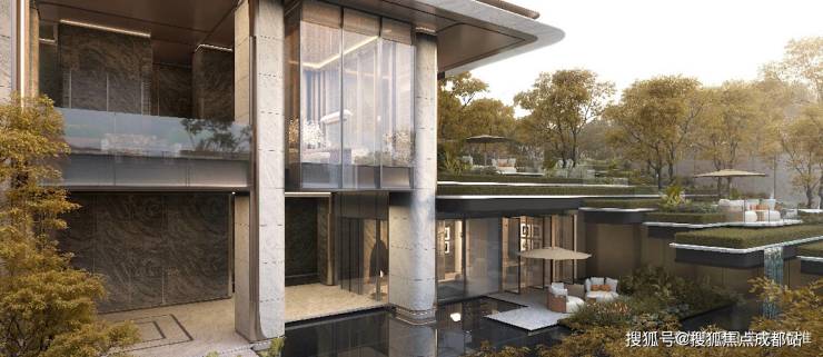 社区内打造多元主题景观,其中【浮岛水院】,以度假式下沉庭院为承载,融合叠瀑、水境、会所等臻奇景观