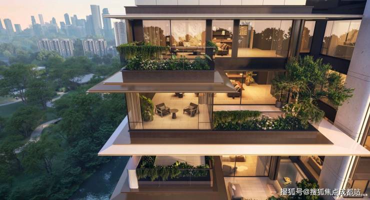 首创层层退台设计,南北多个花园将建筑环绕,宛若一座浮岛花园。大部分卧室与露台相连, 家庭创造丰富的生活场景