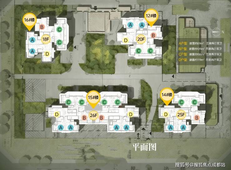 楼栋分布:12#(20层)、14#(25层)、15#(26层)、16#(18层)