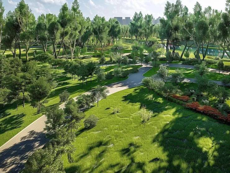 两河森林公园(约6000亩)、TOD慢行公园等超级都市生态集群,让城市与自然相融共生,回归自然本真生活。