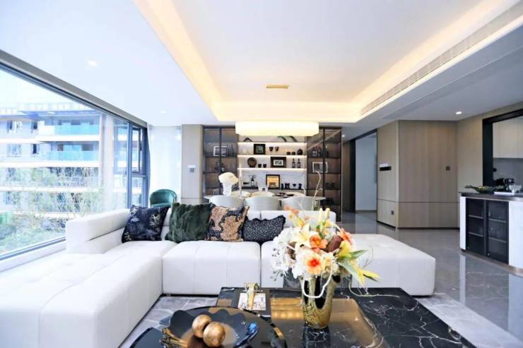 建面约175㎡户型面向城市精英人群,强调空间的开阔与私密性,提供了270°视野的城市会客厅。