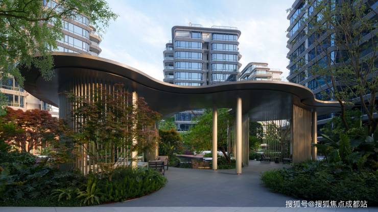 4、【建筑美学革新】采用双曲面弧形铝板与超白Low-E玻璃幕墙组合,配合定制化工艺细节。全景式观景阳台与U型跑道设计,树立成都住宅美学新标杆。