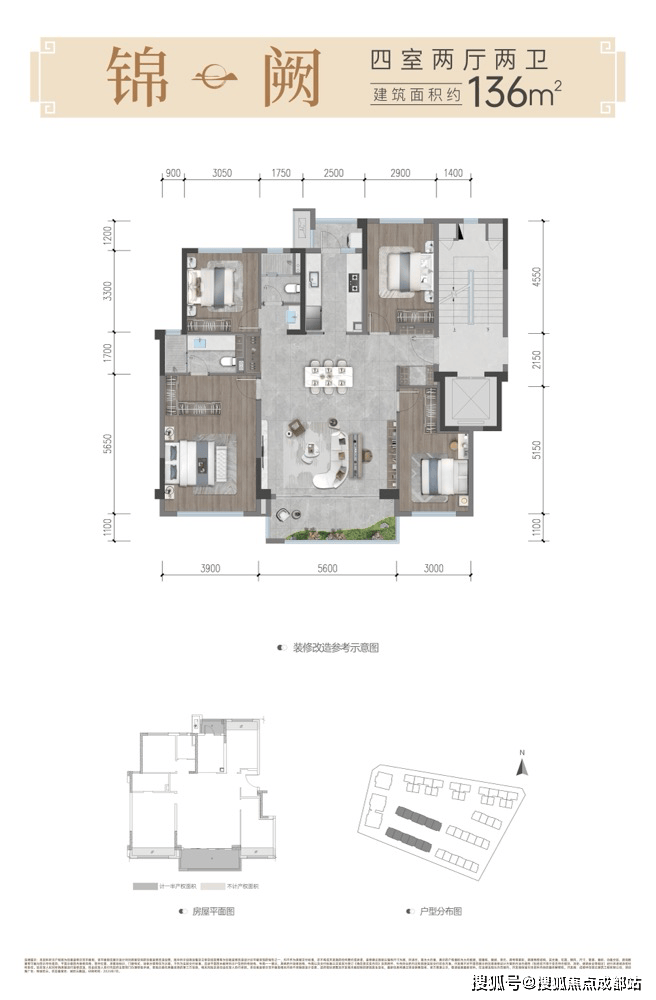 锦阙丨建面约136㎡阔境奢宅丨四室两厅两卫