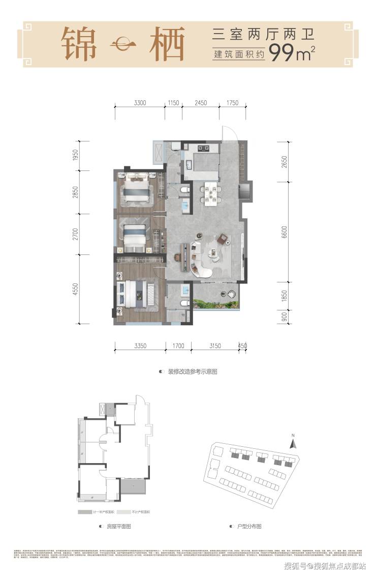锦栖丨建面约99㎡灵动舒居丨三室两厅两卫