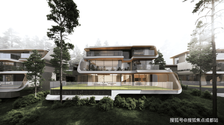 现代主义建筑风格,约16米奢阔面宽,全景落地观景窗,飞檐式屋顶设计,立体花园体系,全套房配置,独立归家动线;