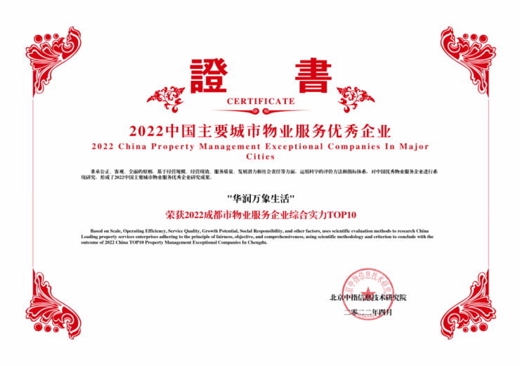荣获2022成都市物业服务企业综合实力TOP10