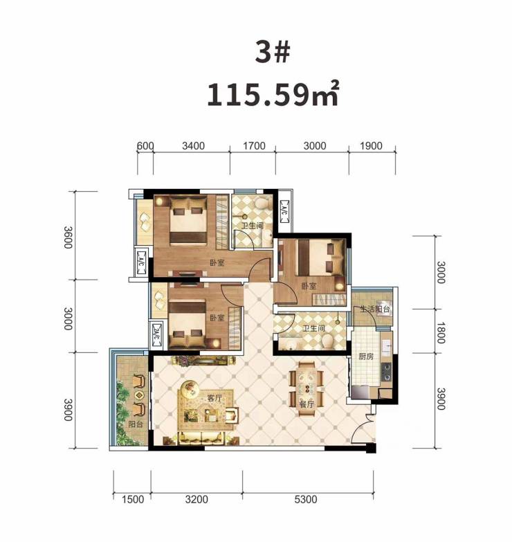 116-127㎡(3-4室2厅2卫):南北通透,主卧套房设计,独立玄关增强私密性,适合多代同堂家庭。