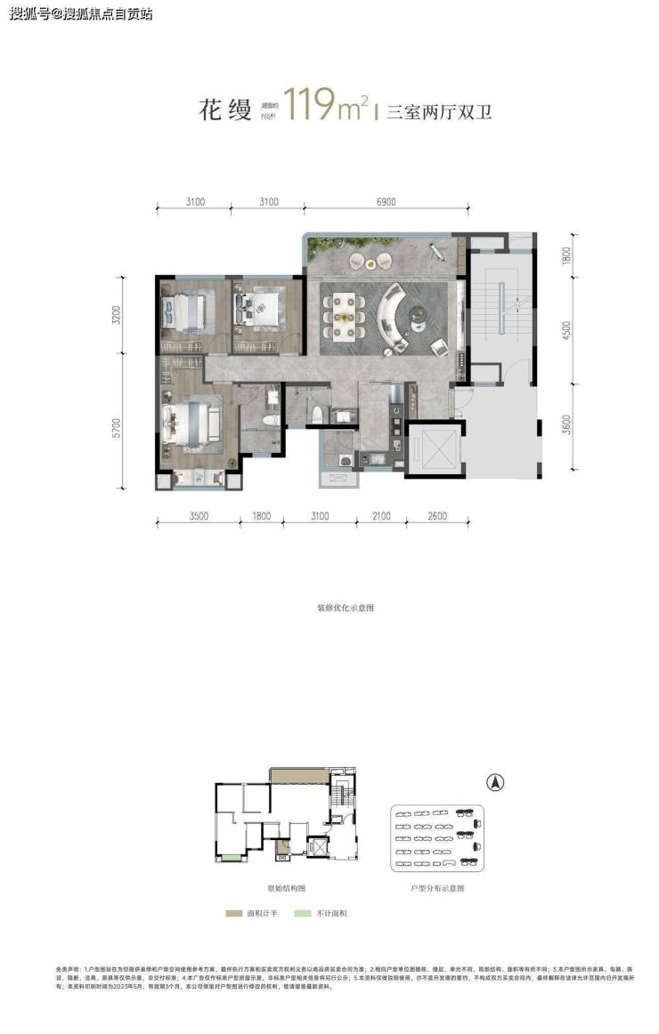 5栋:119平 小高层 三室两厅两卫 2T4户