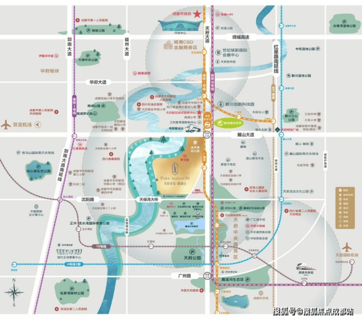 邻天府大道、梓州大道、剑南大道三大城市主干线,接驳地铁1号线和18号线;周边规划高铁天府站,预计2025年建成,全维度立体交通,兼顾事业与家庭。