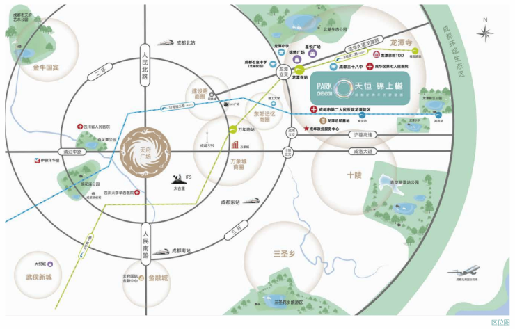 医疗:优质医疗,专家护航健康;成都市第二人民医院(龙潭院区) 总投资超10亿,规划床位1200张,距项目约500m,属于成都排名靠前的三甲医院,配套先进资源;成华区第七人民医院在旁,且与成都军区总医院、四川省肿瘤医院等多家上级医院建立了长期协作、双向转诊关系,呵护健康生活