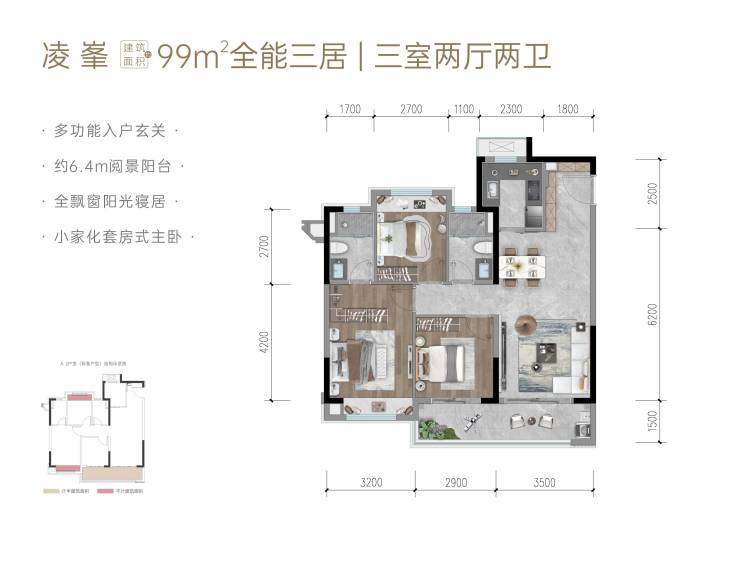 99㎡全能三居-三室两厅两卫
