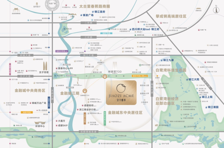 生态:交子公园、白鹭湾湿地,还有全长超10公里,面积约60万m²的锦江十里绿廊,提供板块的生态底色;