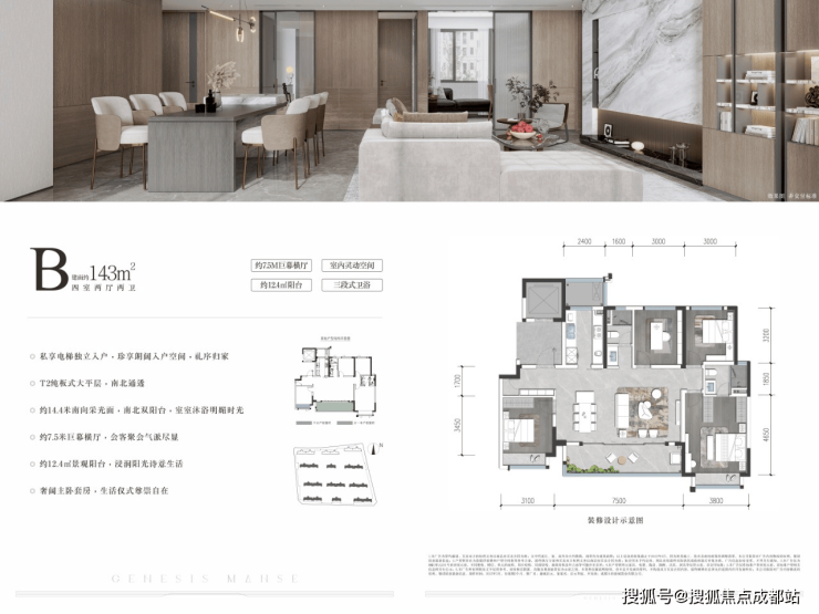 建面约143㎡ 巨幕横厅四房两厅双阳台