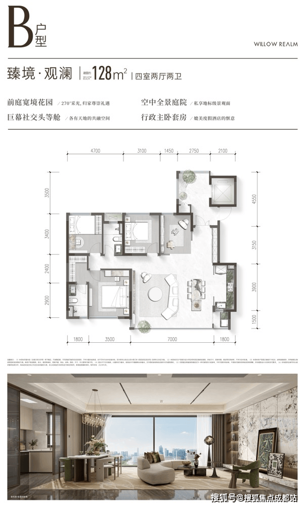建面约104-143㎡新标阔境平层;层高约3.05米(除部分含底商楼栋);尊享全景独立电梯厅入户
