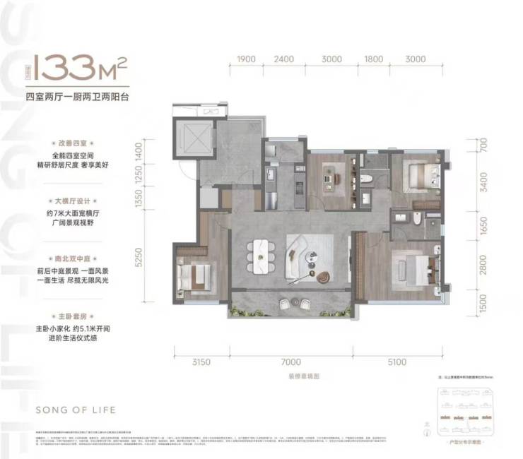 A02户型 建面约133平米四室两厅两卫