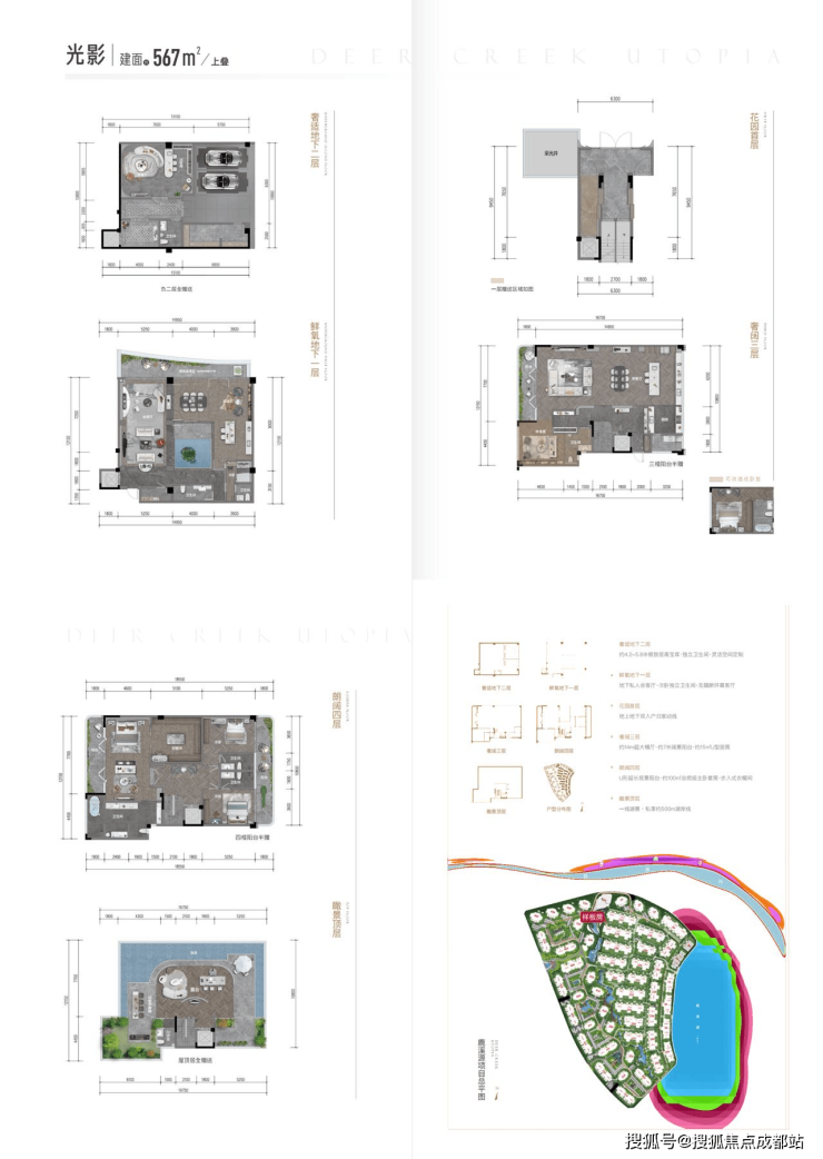 3、度假式景观园林:八大景观主题庭院,九重叠水景观,生活与自然无界共融。