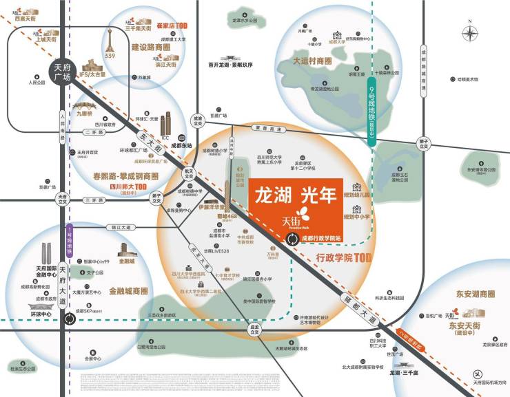 地标建筑集群:180米龙湖光年超高层与蜀峰468共同构筑城东天际线。
